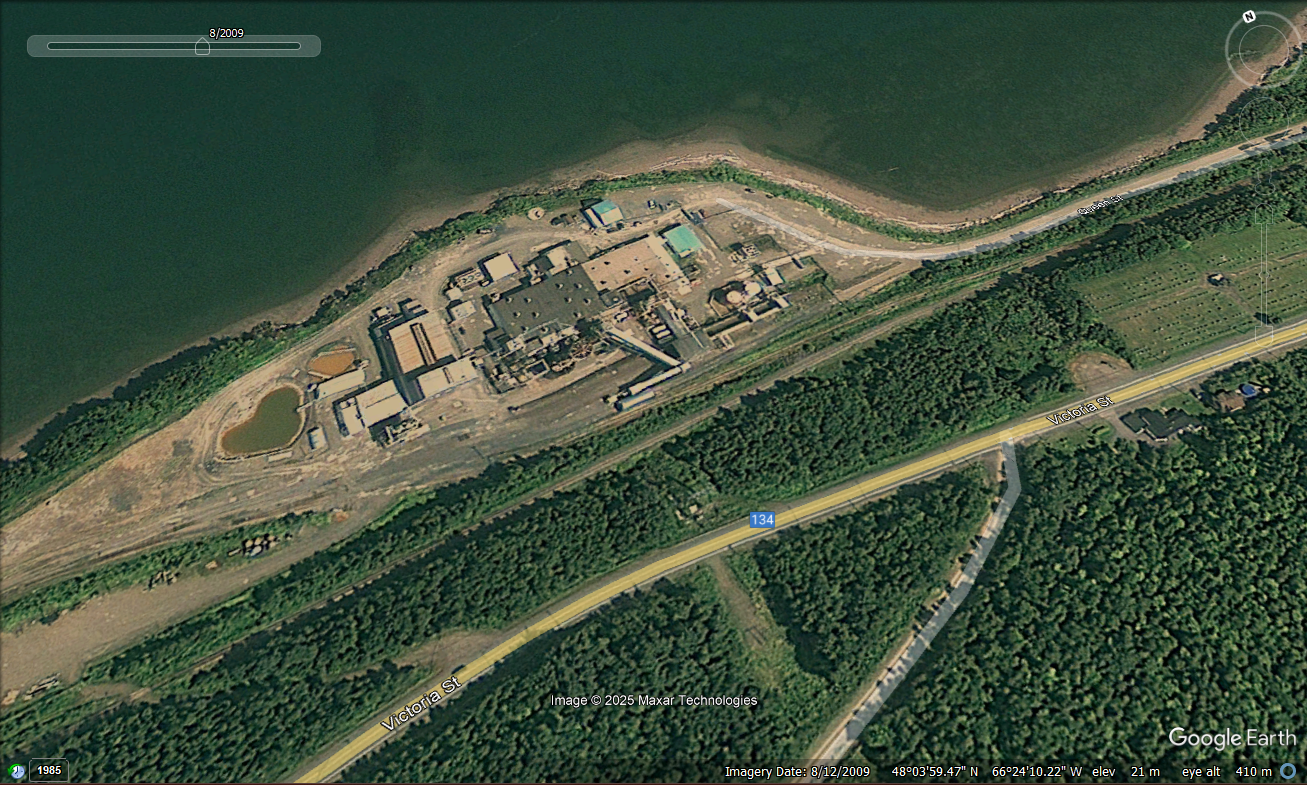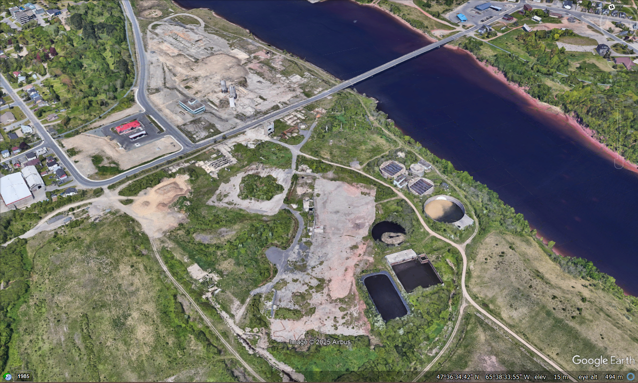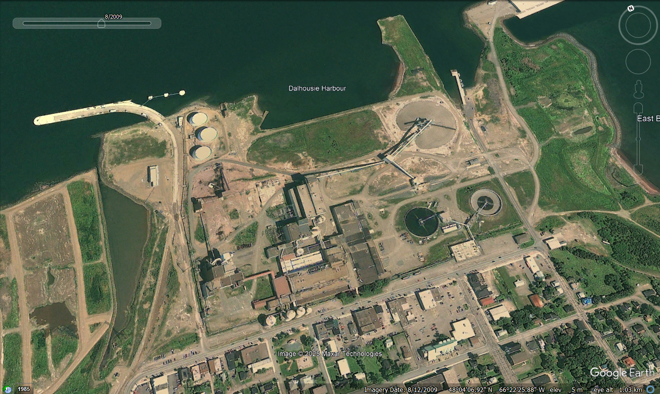 There was also a chloralkali plant on the west end of Dalhousie (shown in the Google Earth screenshot below) which also ceased production in 2008.