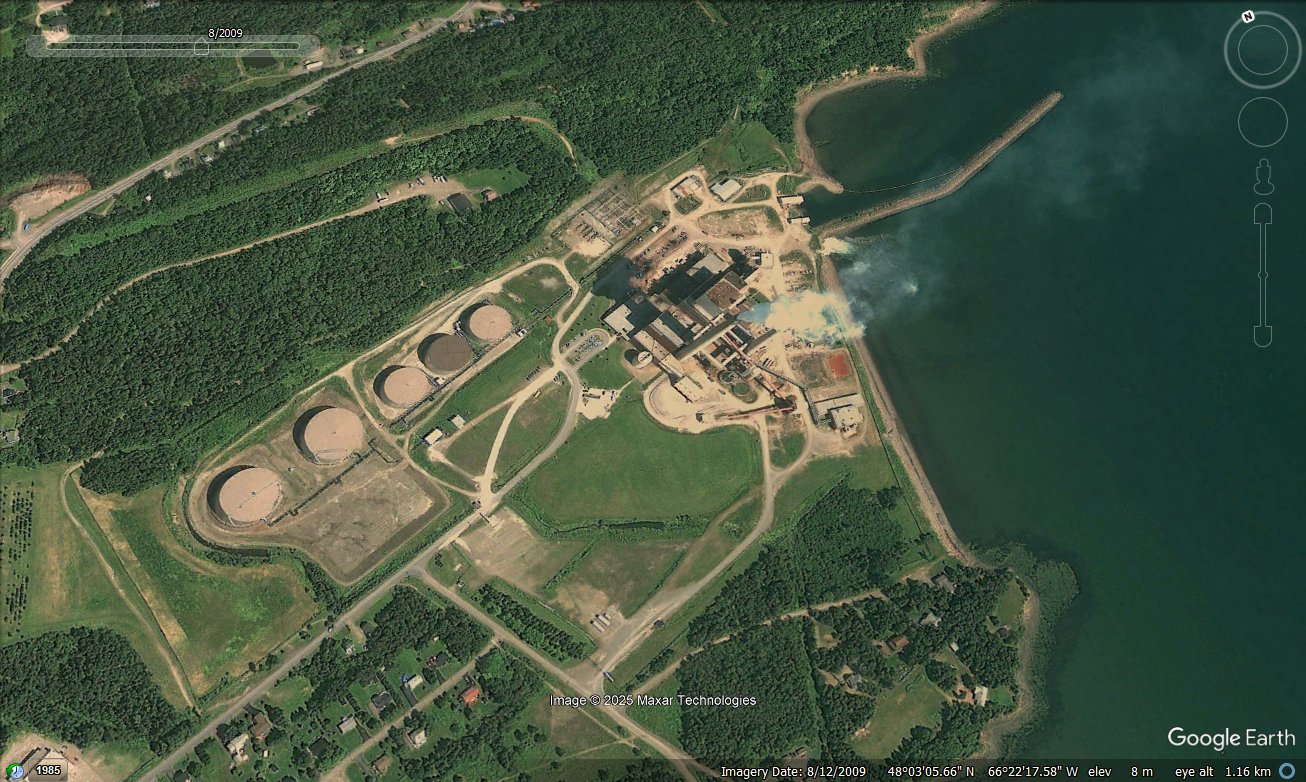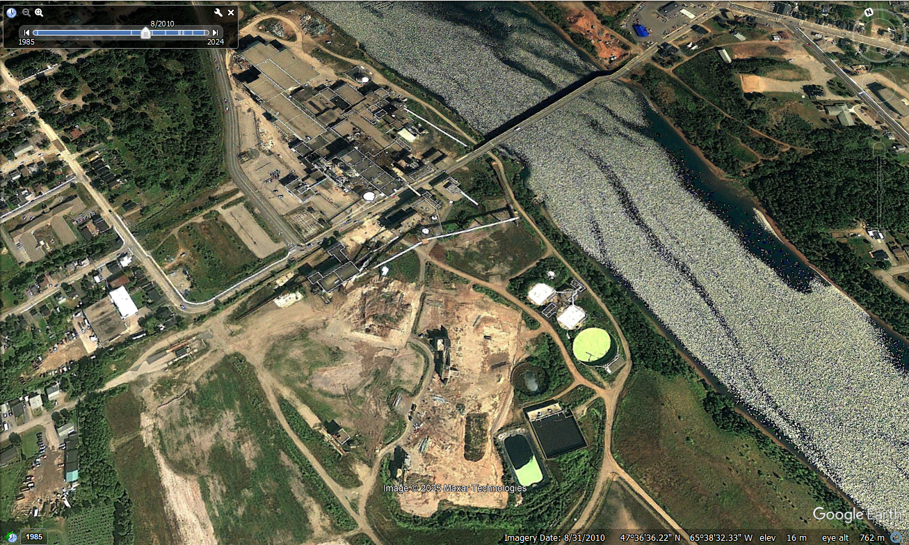 Here are some screenshots from Google Earth of the generating station and the paper mill sites in 2009 and 2024, respectively. The sites have mostly been levelled (aside from a tank farm at the generating station), but they have not been redeveloped. The town would like to pivot from industry to "investing in tourism, arts and culture".