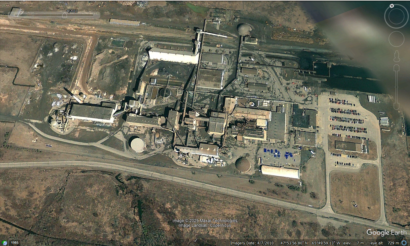 And here's a good satellite image of the smelter site from Google Earth from back when it was in operation (note the full parking lot):
