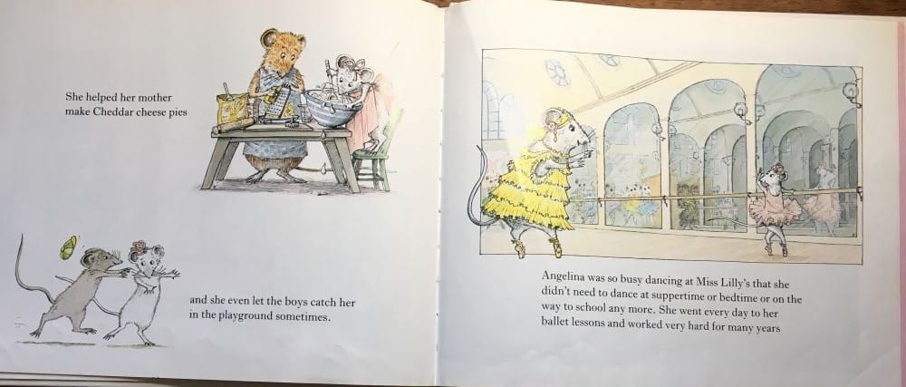 Angelina is a mouse. Through ballet lessons, she becomes more disciplined. Other books in the series also teach pro-social values.
