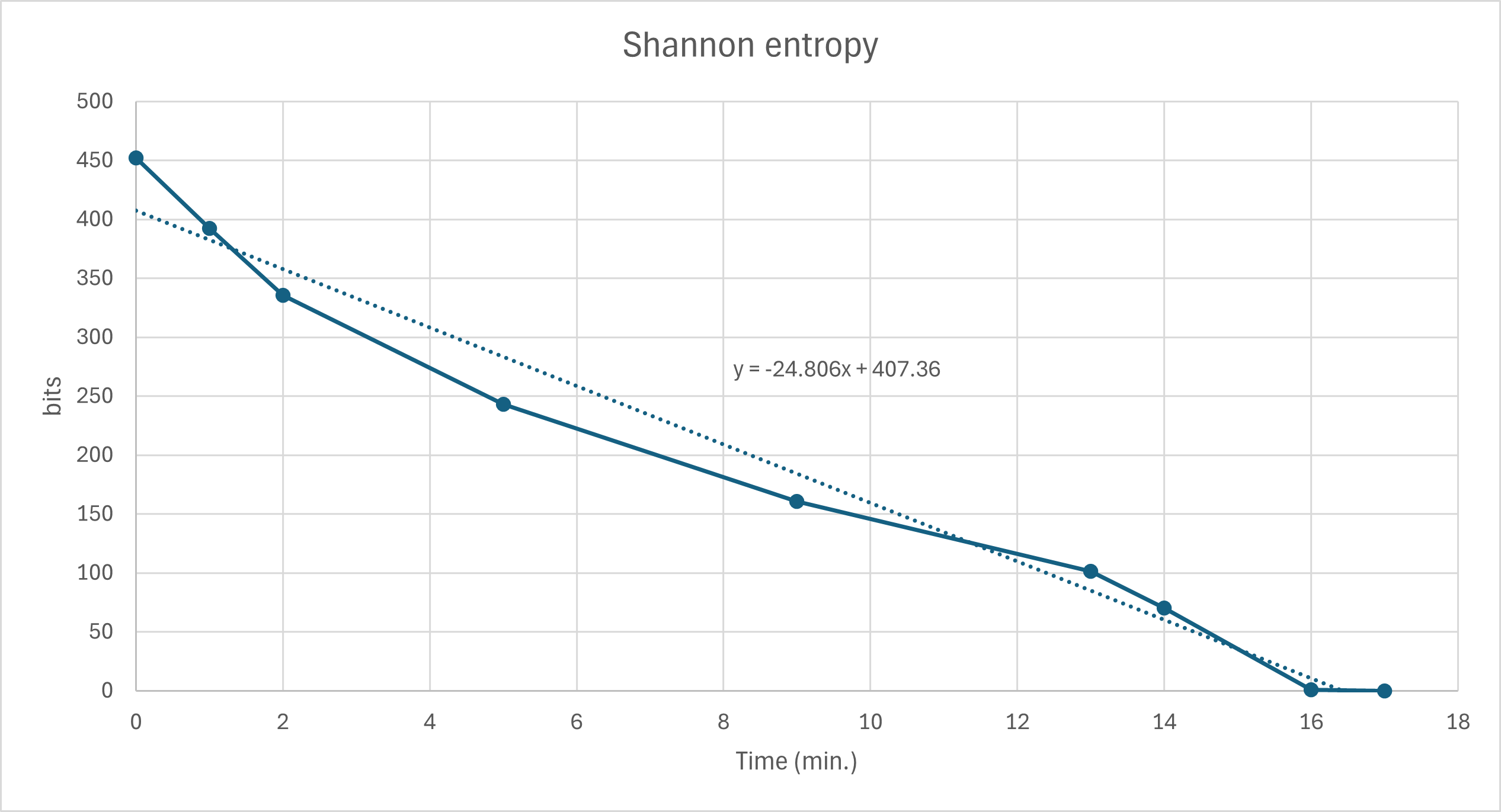 Before displaying the results, I'll explain the calculations I used. Wikipedia summarizes the parallel between statistical thermodynamics entropy (Boltzmann) and information entropy (Hartley):