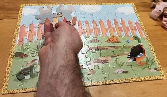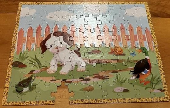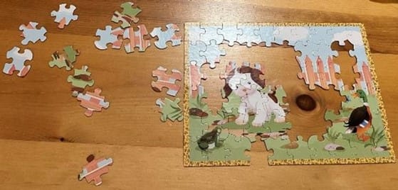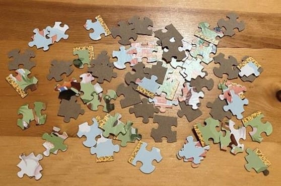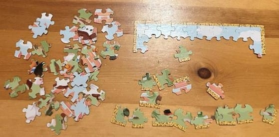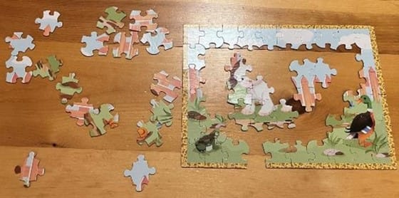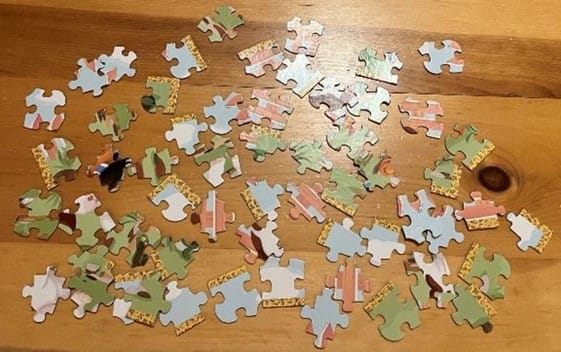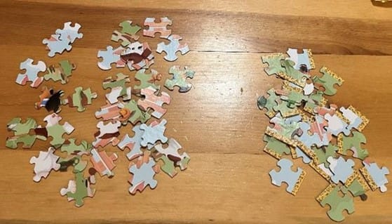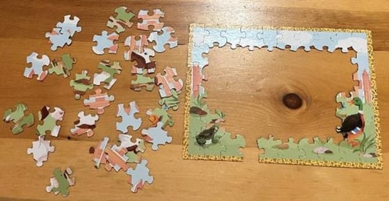 Let's make it concrete by looking at photos of a puzzle in various stages of completion.
