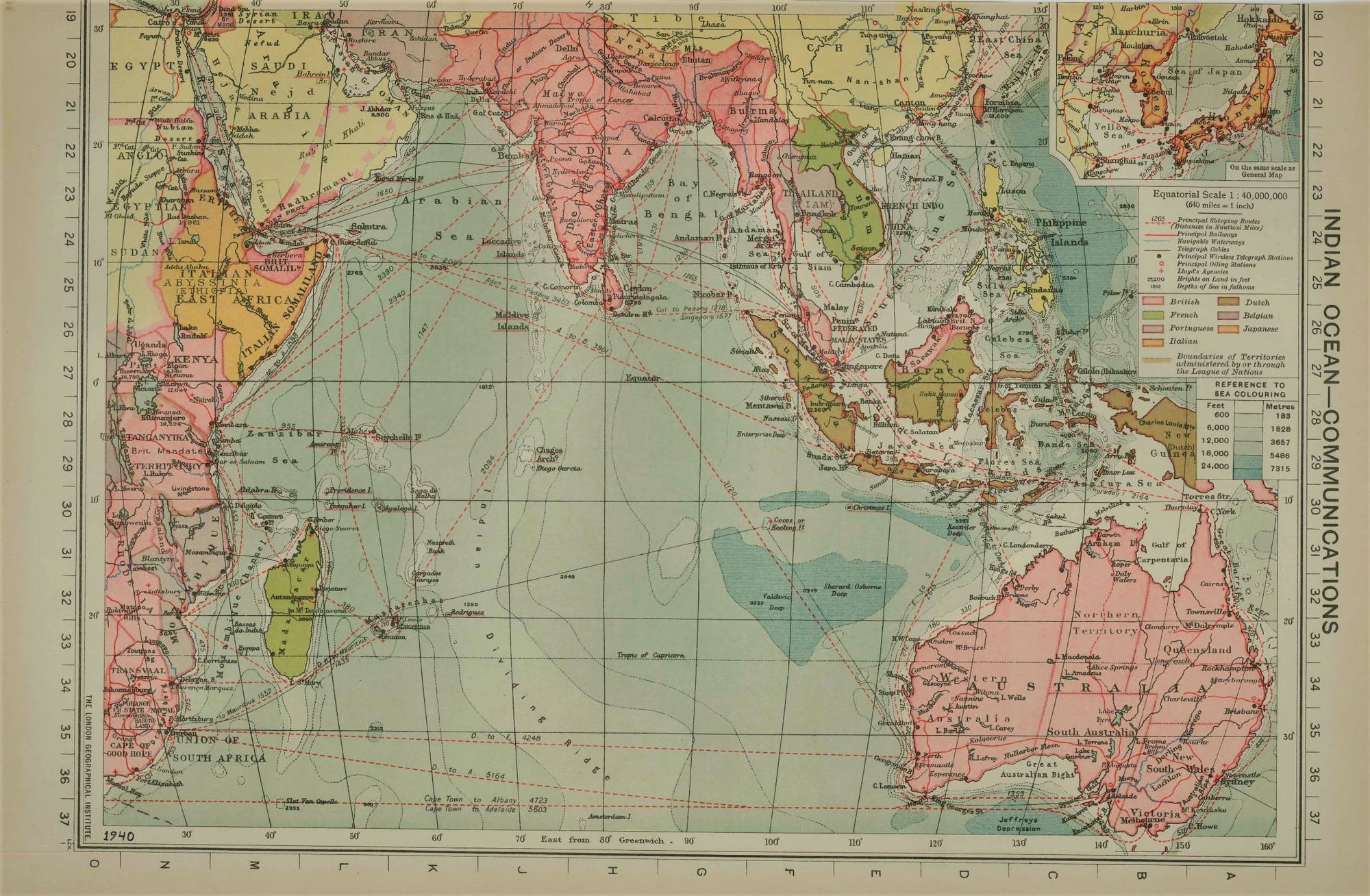 To close off this post, here's an old map I found of the Indian Ocean in 1940 (it's at least a century later than Ocean of Trade and also later than all but the last two chapters of A Splendid Exchange but it still shows a lot of the key ports mentioned) and a quote (from Bernstein's book) about the monsoon legacy: