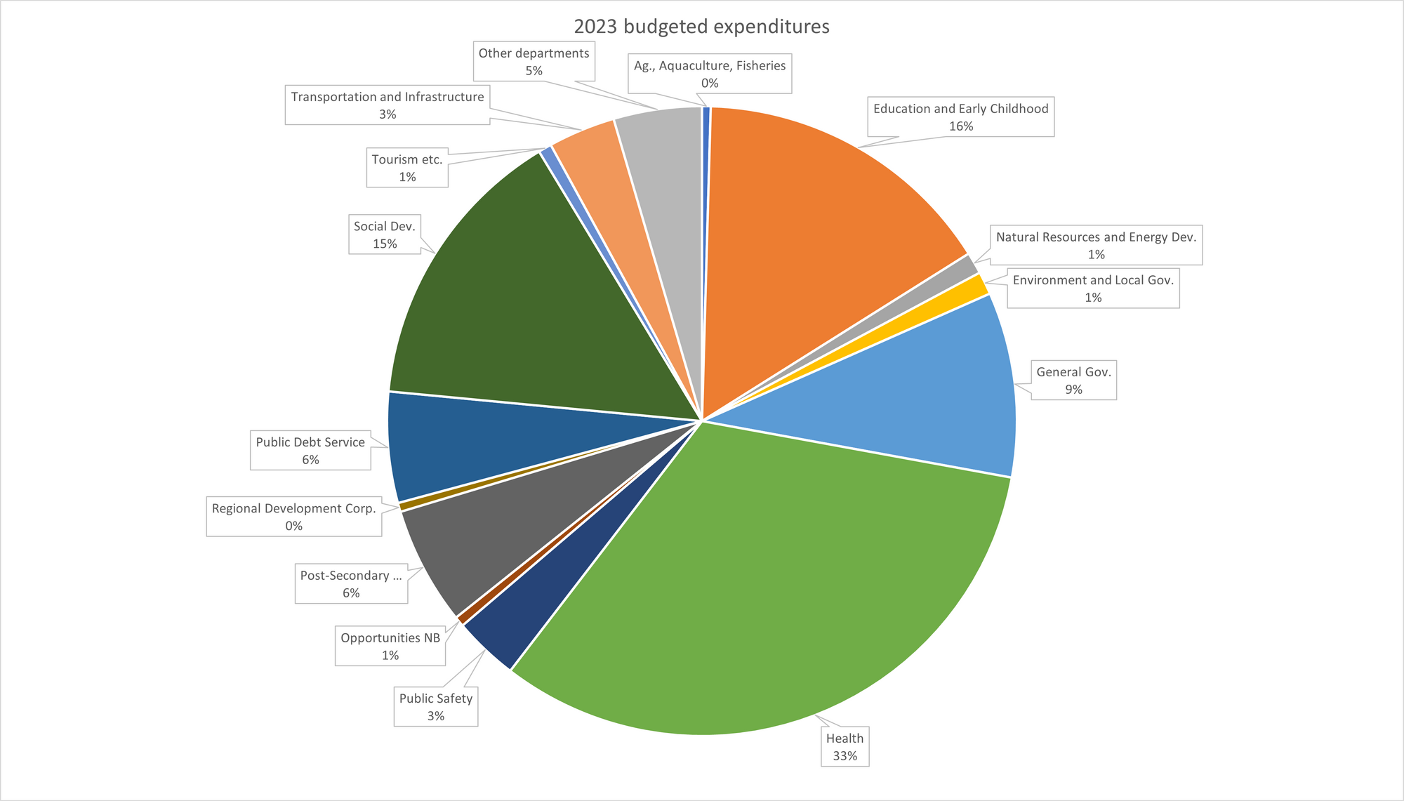 Here are a few graphs related to expenditures: an overall pie chart of spending by department, and breakdowns within 2 of the 3 largest departments (78% of the spending within Education and Early Childhood Development goes to school districts, so it would have been a boring pie chart):