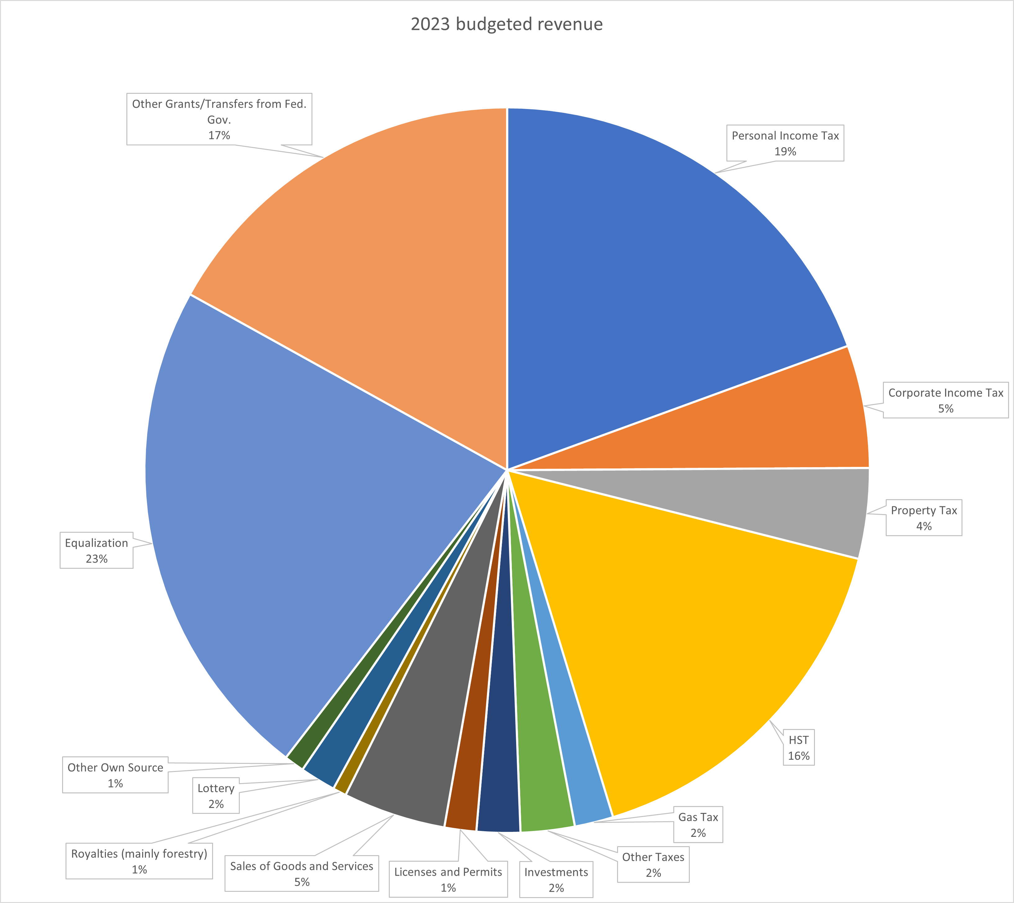 On the revenue side of the 2023 budget, the major anticipated sources of revenue for the Government of New Brunswick include: