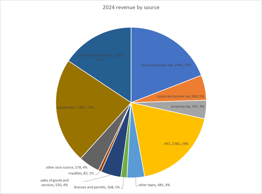 On the revenue side of the 2024 budget, the major anticipated sources of revenue for the Government of New Brunswick include: