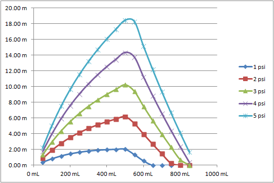 - A higher pressure has a big impact. In practical terms, using tape to get a better seal between the stopper and the bottle allowed for more air to be added before the bottle popped off, and thus greater heights to be reached.